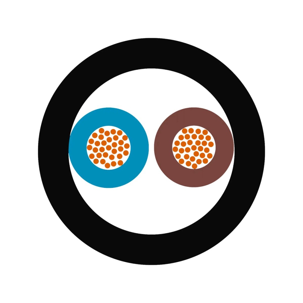 動力和控制電纜; 2X1; U0/U: 0,6/1 kV; HFFR; 芯線識別: 顏色和號碼; 柔性