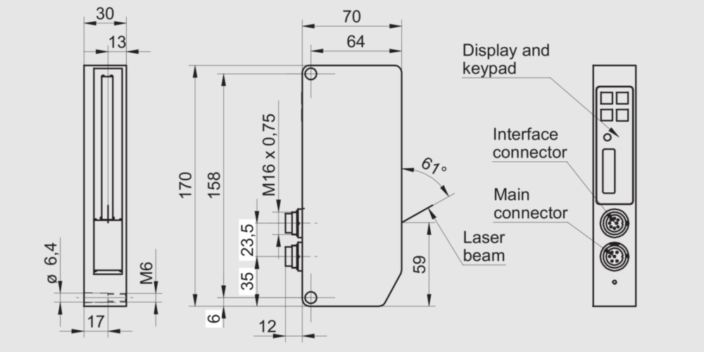 0 … 120 mm;IP 54脈沖紅色激光二極管,推挽4個預設點或客戶自行設置